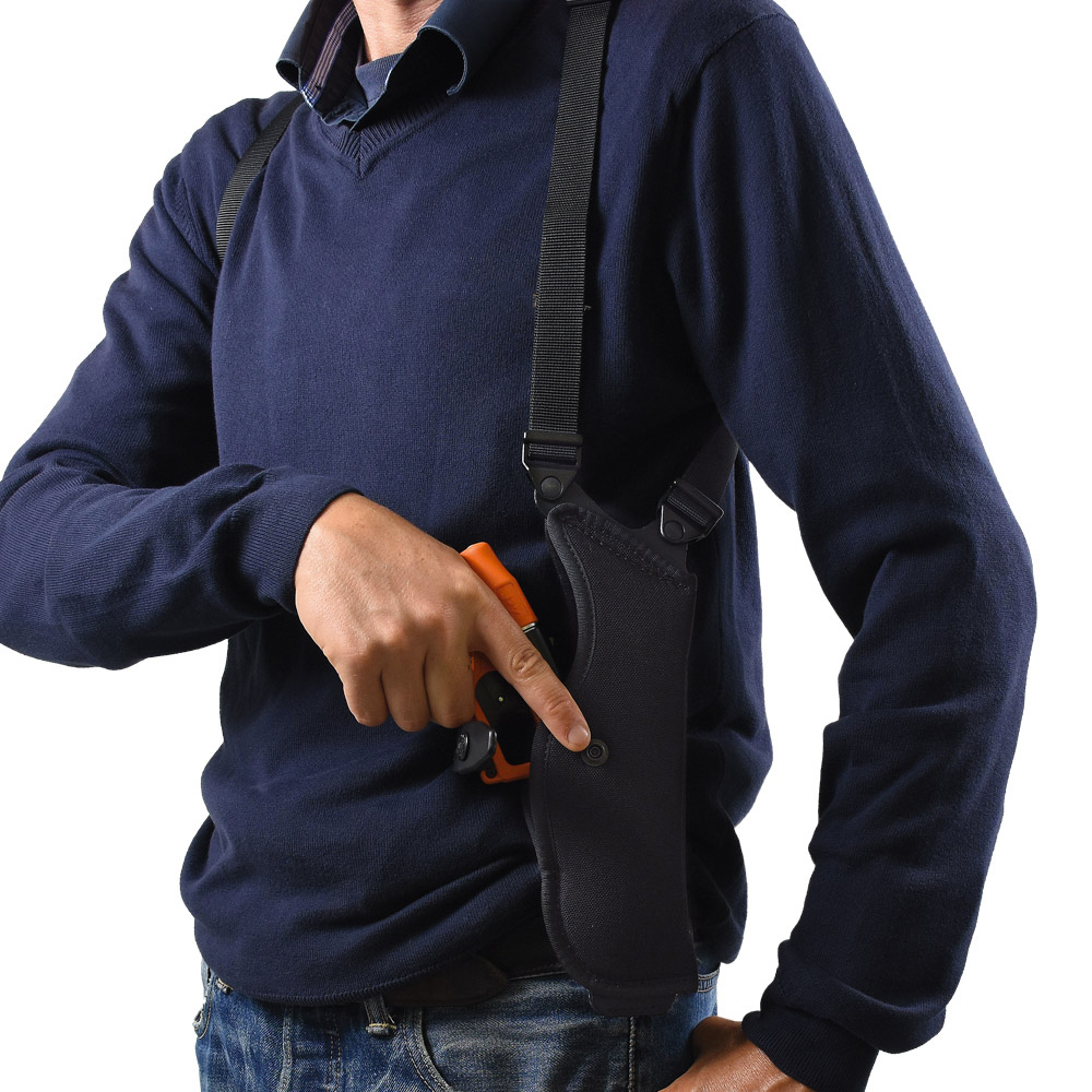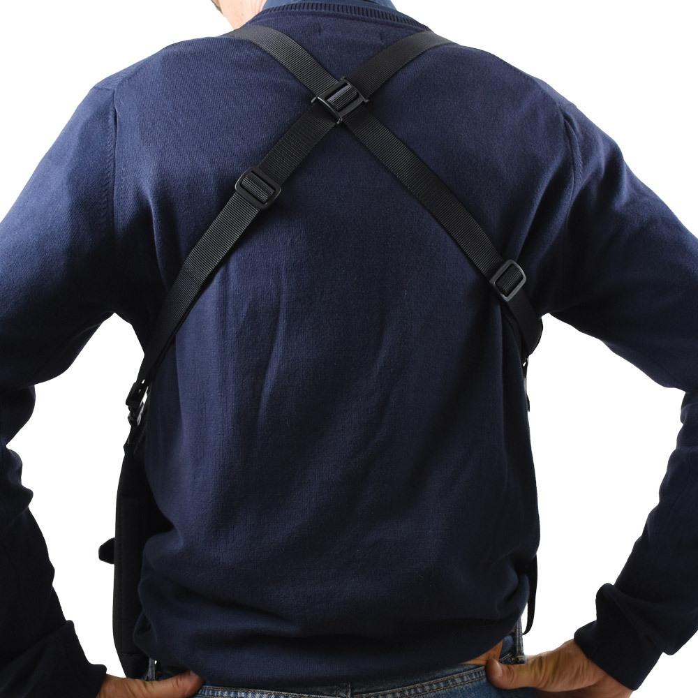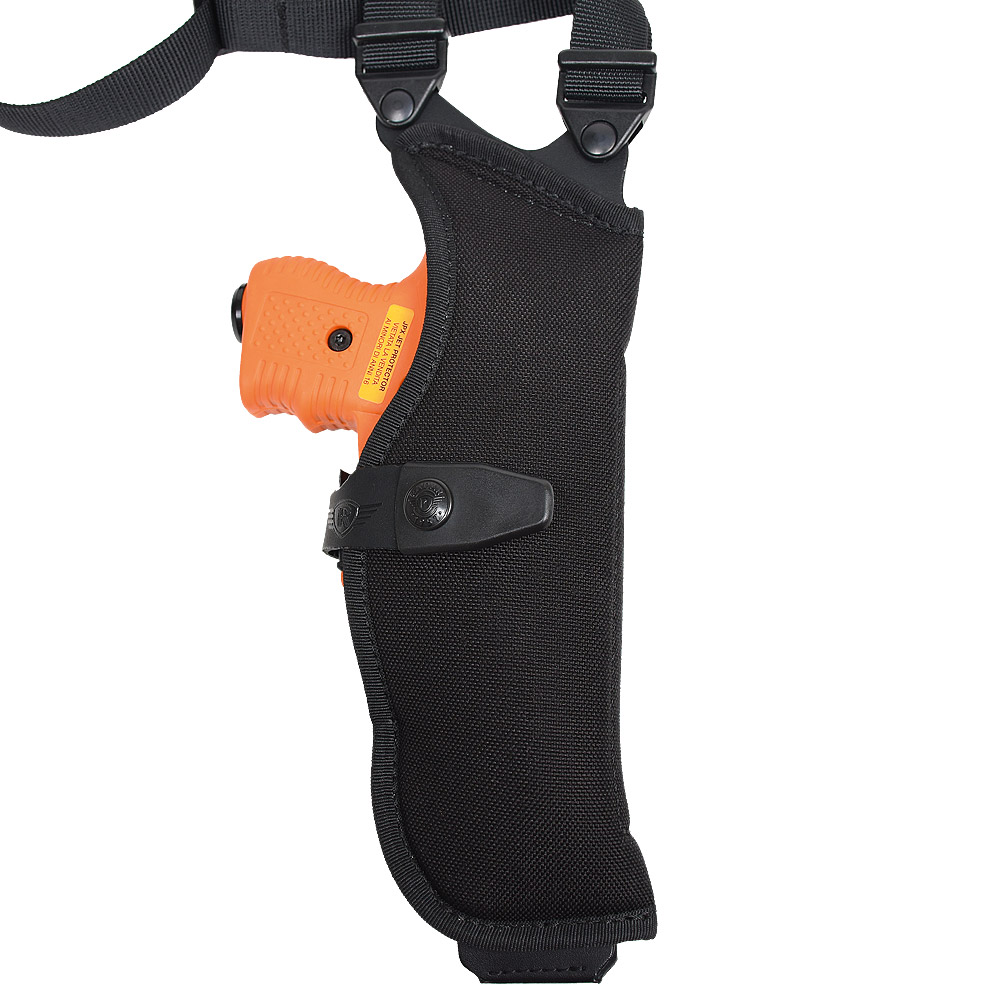 È una fondina adattabile a qualsiasi struttura fisica grazie ad uno doppio spallaccio regolabile e dotato di riporto ad incrocio che garantisce una perfetta ripartizione dei pesi. La fondina consente un notevole occultamento dell’arma ed una buona libertà di movimento, grazie alla speciale conformazione della parte superiore ad incrocio in modo da mantenere il calcio della pistola più accostato possibile al corpo