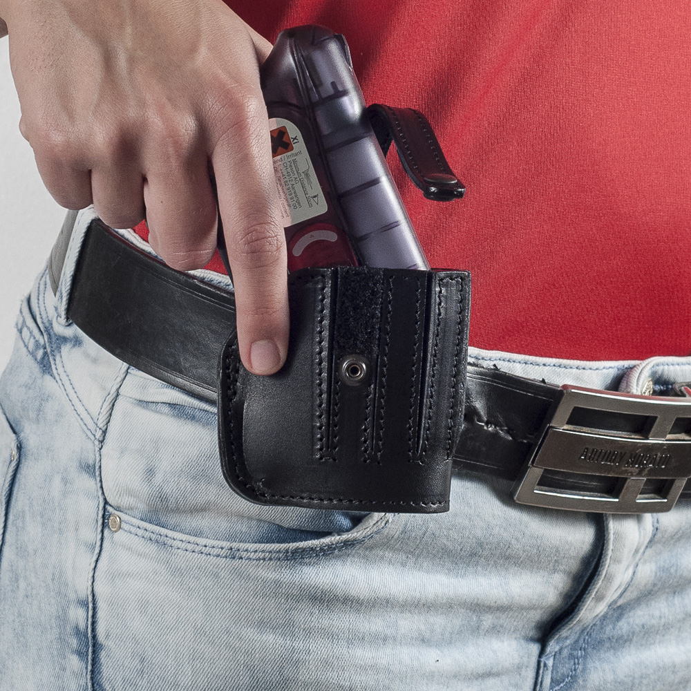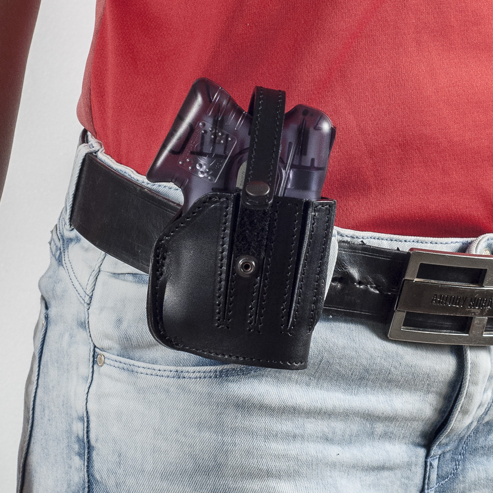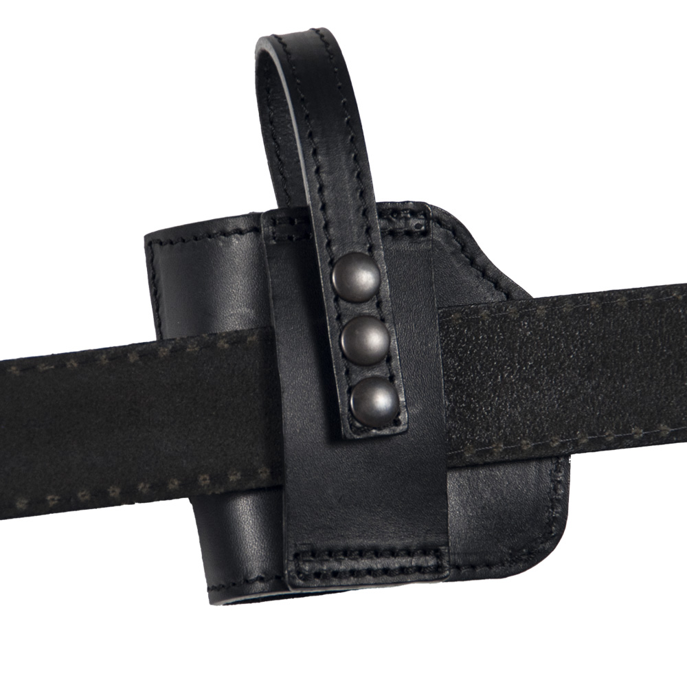 Fondina realizzata in cuoio di prima scelta lavorato a mano. è dotata di un taglio posteriore per il passaggio in cintura. I materiali e le finiture di alta qualità le conferiscono ottima tenuta, resistenza all'usura e comfort. Un laccio incorporato, regolabile a varie altezze con un sistema di bottoni e velcro, consente di adattare la fondina a pistole di diversa lunghezza.
