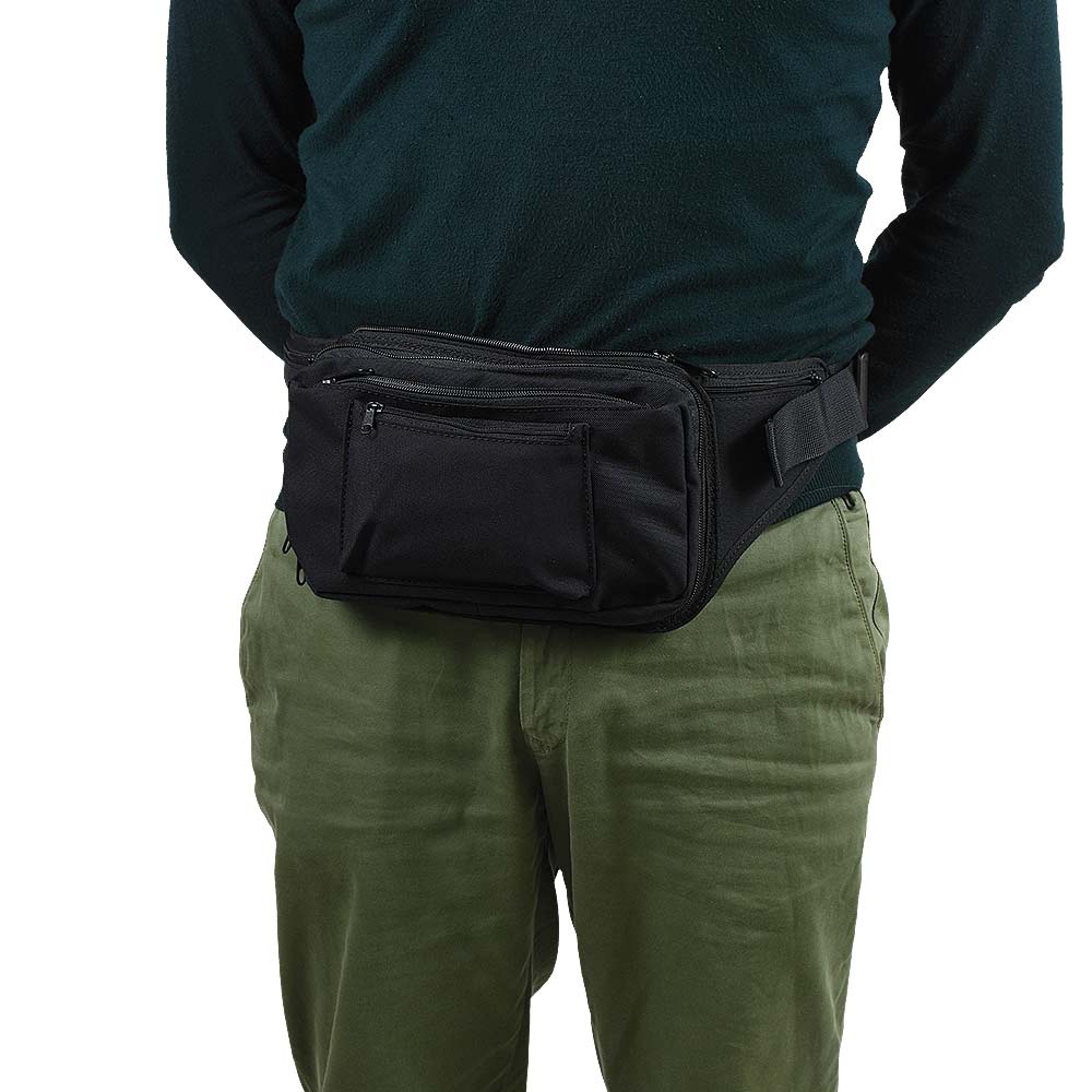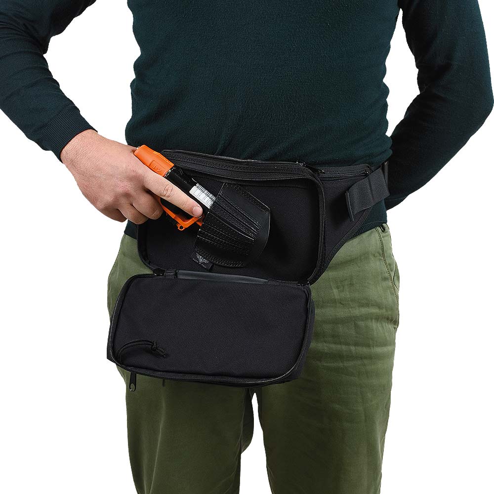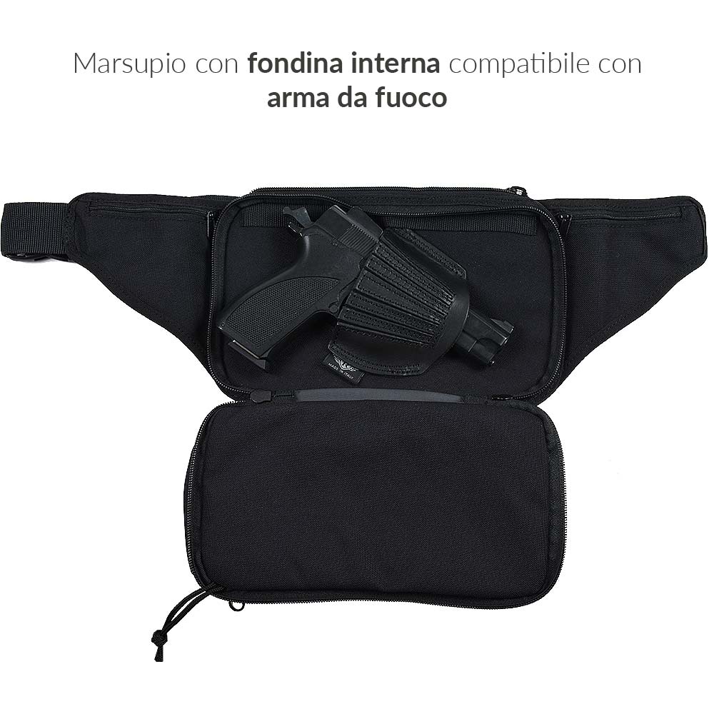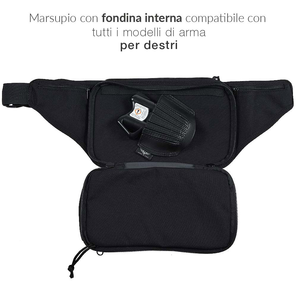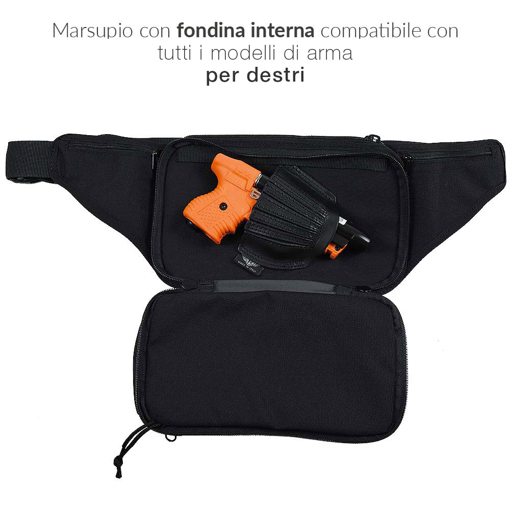 Marsupio in Cordura con porto nascosto della pistola al peperoncino grazie alla fondina in vera pelle a ventaglio universale.